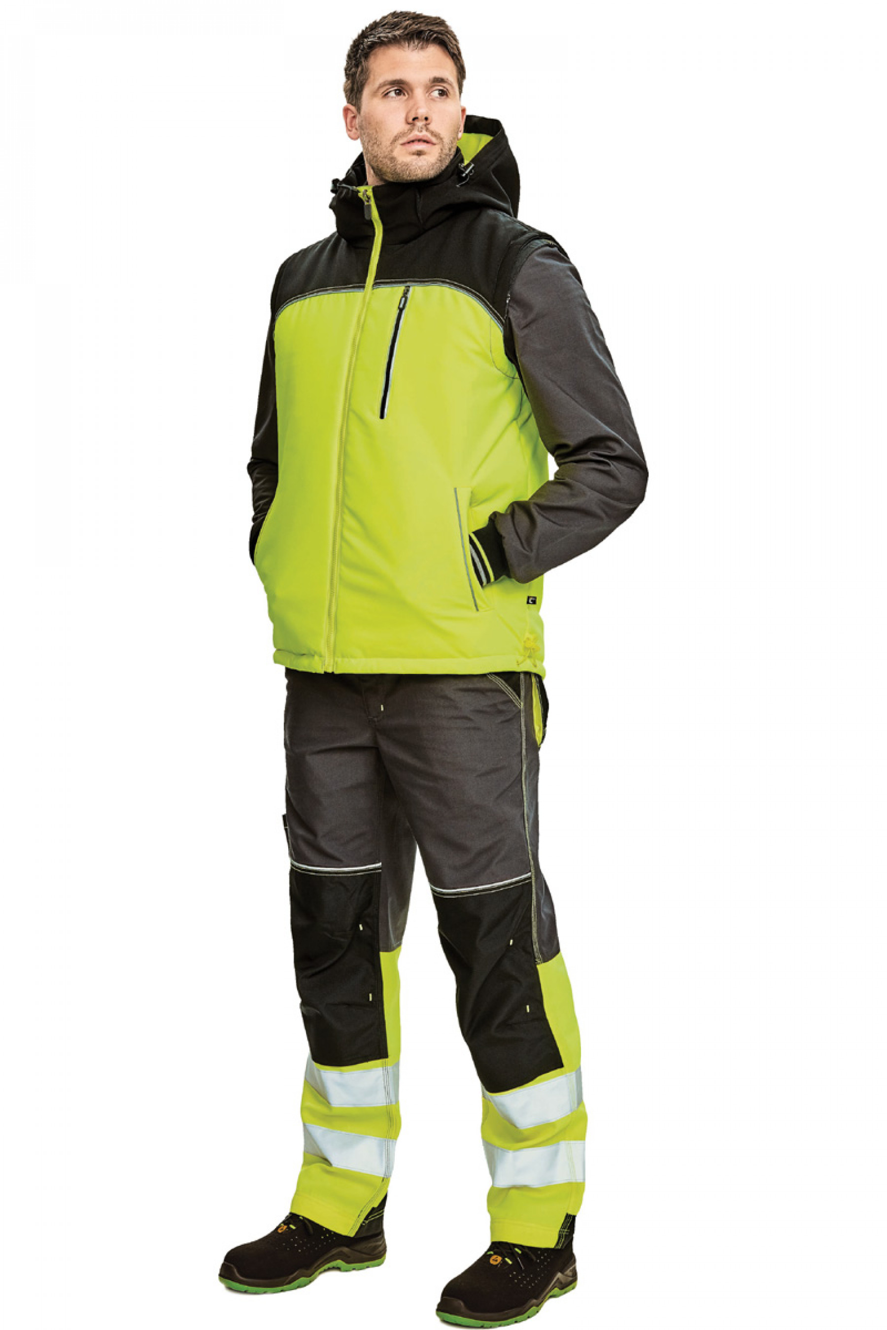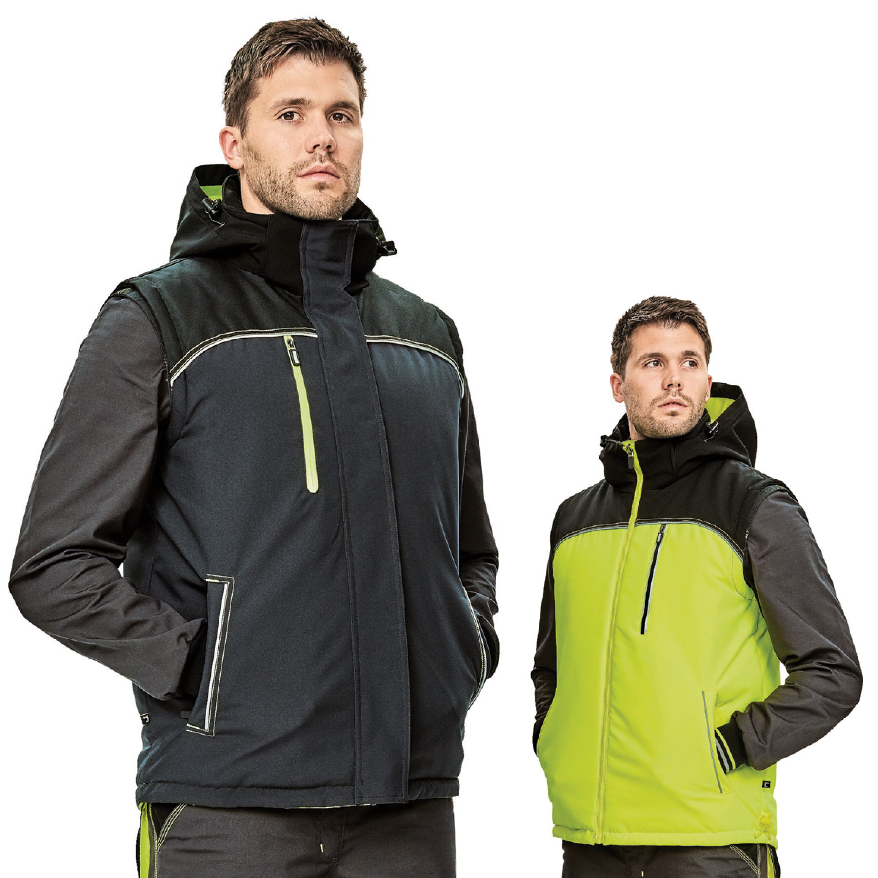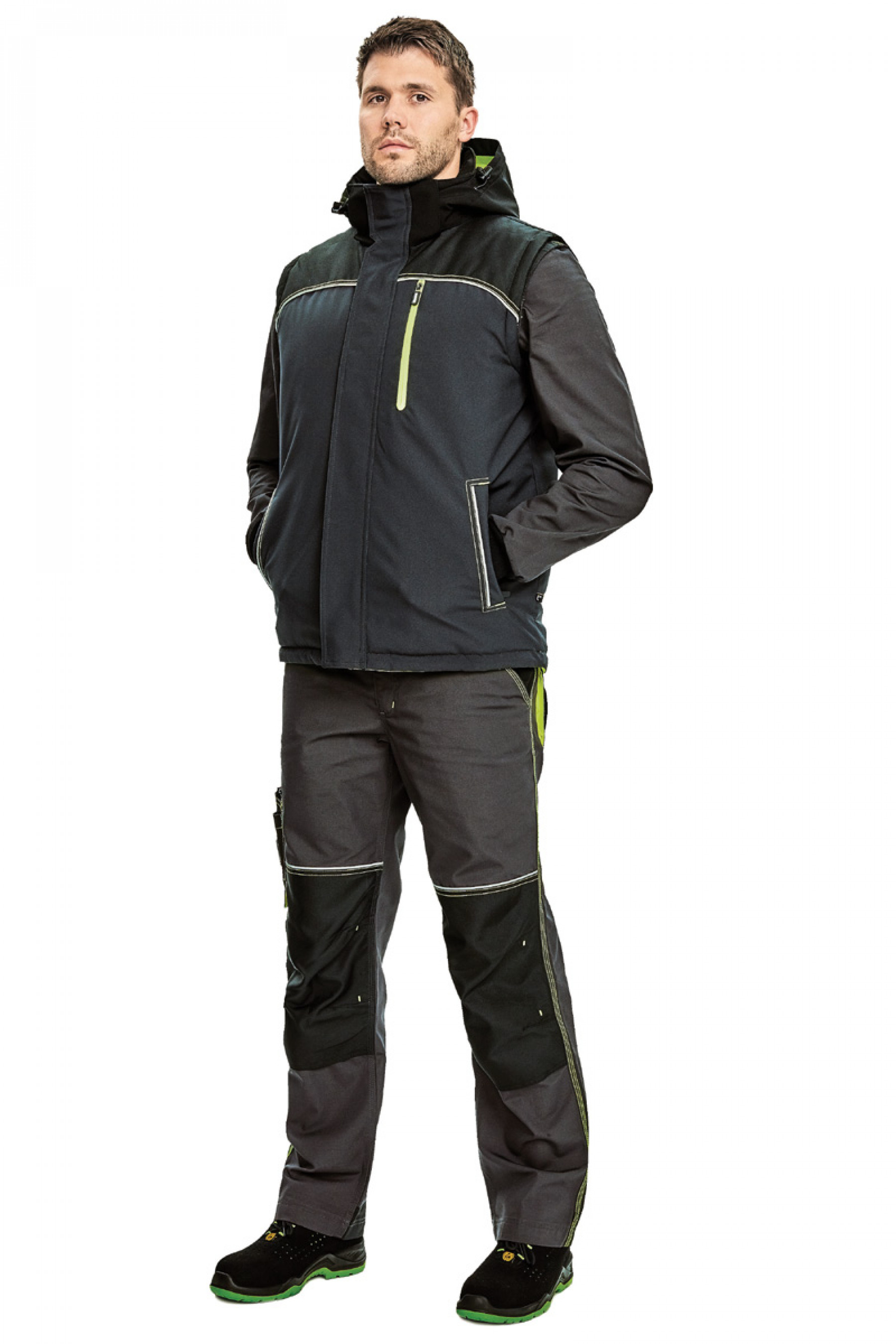 Конструкция куртки рассчитана на использование дополнительной утепляющей толстовки с начесом для выполнения работ в особо холодных условиях: на открытых строительных площадках, в карьерах, при температуре воздуха ниже -20ºС, в условиях повышенной влажности воздуха, при ограниченной физической активности работника.